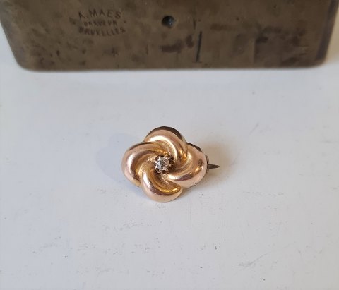 Smuk gammel 14 kt guld broche med old mine cut diamant. Stemplet: 585 Mål: 15 x 17 mm. Vægt: 1,7 gram.