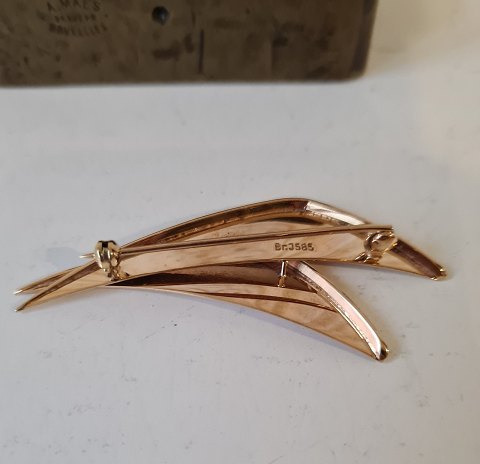 Bræmer Jensen vintage broche i 14 kt guld. Stemplet: Br.J - 585 Mål: 3 x 6,5 cm. Vægt: 7,5 gram.