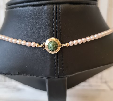 Kulturperlekæde med lås i 14 kt guld prydet med perle i agat.