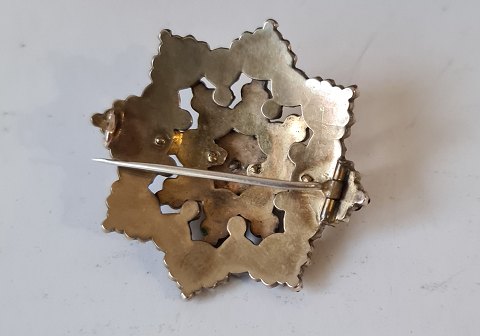 Antik stjerneformet granat broche. Smukke mørke granater fattet i forgyldt metal. Diameter 3,4 cm.