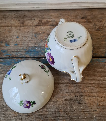 Royal Copenhagen Let Saksisk Blomst sukkerskål No. 1680, 1. sortering. Højde 11,5 cm. Diameter 10 cm. Lager: 2