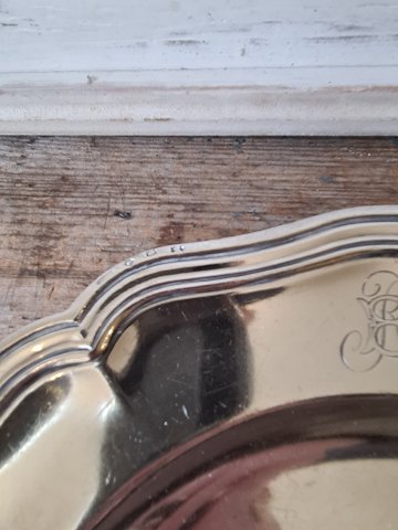 Very beautiful French silver plated dish. The dish is provided with French stamps and a beautiful monogram. Diameter 29.5 cm.