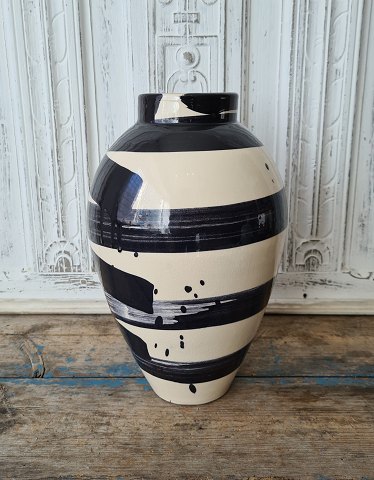 Per Arnoldi for Kähler - Unika vase Cremefarvet vase dekoreret med abstrakte sorte penselstrøg. Signeret: HAK samt Per Arnoldis signatur. Højde 31 cm.