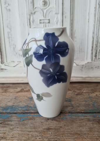 B&G Artnouveau vase dekoreret med blå klematis no. 6523/45 - 16,5 cm.