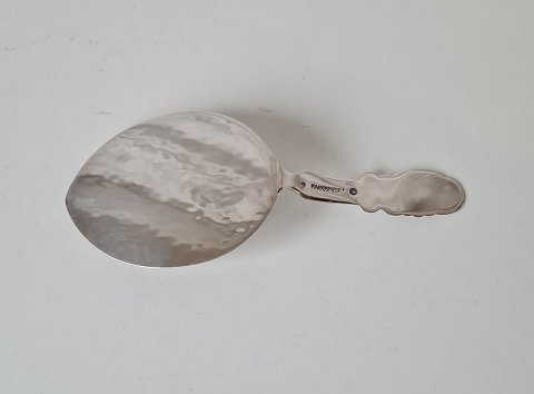 Flot håndsmedet kagespade i sølv fra 1938, ornemental dekoration på skaftet samt hammerslået laf Stemplet de tre tårne 1938 Længde 16,2 cm.