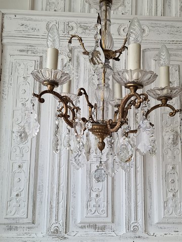 Meget smuk 5-armet lysekrone behængt med talrige store prismer