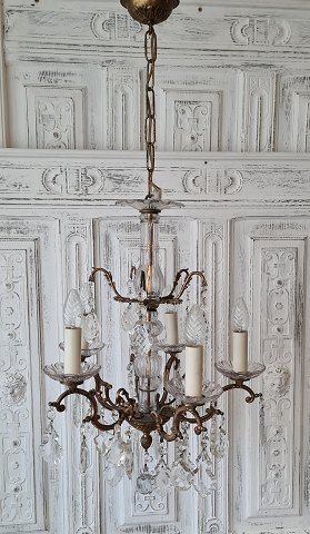 Meget smuk 5-armet lysekrone behængt med talrige store prismer