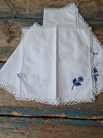 Sæt på 7 stk stofservietter broderet med blå blomst