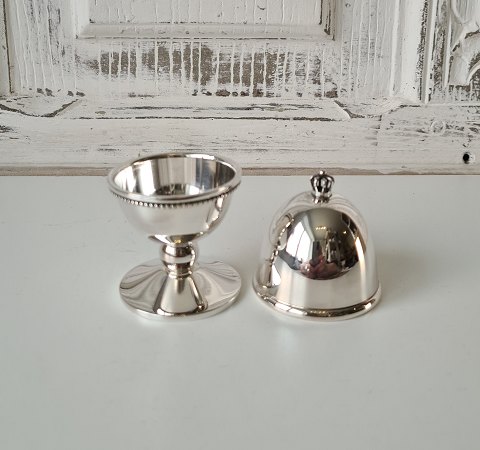 Egg cup in sterling silver, the top of the lid is designed as a crown.