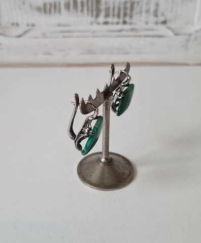 Vintage øreringe i sølv og malakit Mål på selve stenen: 1,3 x 1,5 cm. De er købt i Sankt Petersborg i 1970´erne