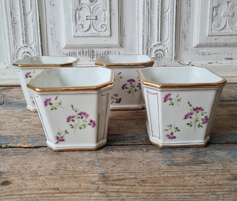 Set of 4 antique B&G flower pot decorated with gold edges and purple flowers.