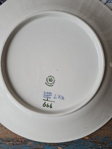 Royal Copenhagen Musselmalet Halvblonde rundt fad med hanke No. 666, 2. sortering mål 28 x 31,5 cm. Lager: