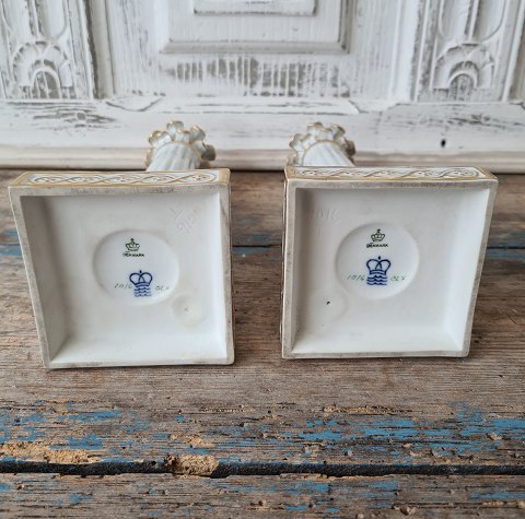 Royal Copenhagen par meget smukke søjle lysestager. Juliane Marie mærket No. 1016, 1. sortring Højde 21,5 cm.