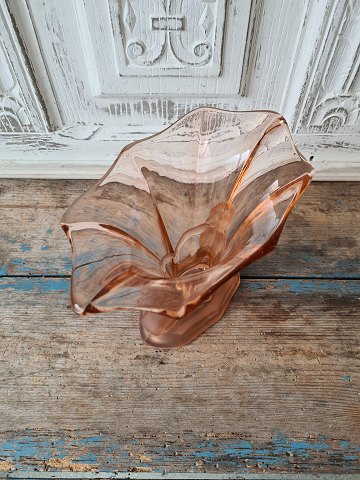 Auguste Walther & Sohne Art Deco Windsor vase in pressed pink glass. Produced in the 1930s.