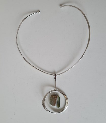 Tone Vigeland vintage necklace in sterling silver with green stone Stamped: TV - Sterling - Norway