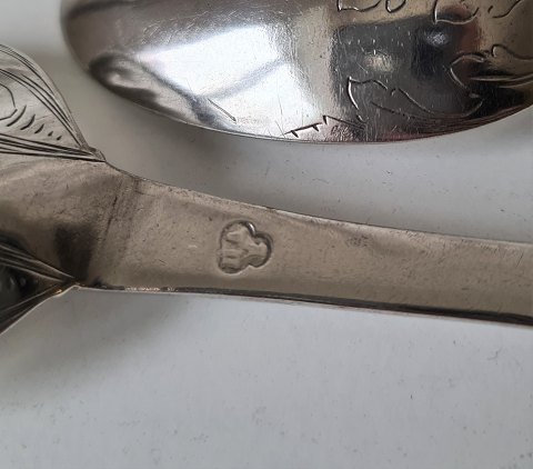 Par 1700 tals barok brudeskeer/rotehale skeer i sølv graveret med ejerinitialer samt årstal 1743 Utydeligt mesterstempel Længde 19,5 cm.
