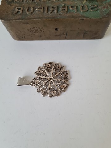 Filigree flowers pendant in silver.