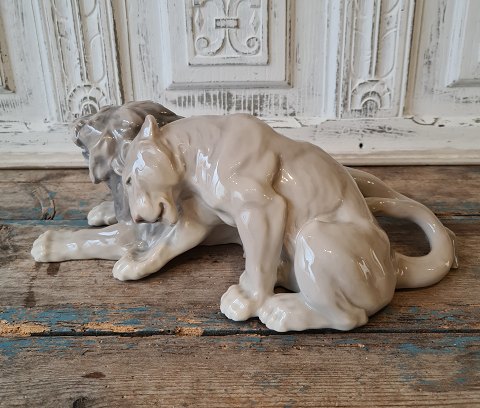 B&G figure - Lion & lioness No. 1823, Factory second Measure 22 x 37 cm. Height 13.5 cm. Design: Knud Kyhn Produced between 1915-48