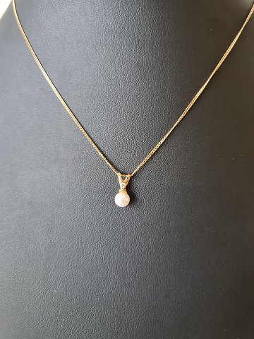 8 kt guld halskæde med vedhæng prydet med perle og zirkon