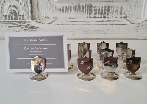 Sæt på 12 stk bordkortholdere i sølv - Colombia - Florentina Bogota Stemplet: Florentina - Bogota - 800 Fremstår med monogram. Højde 2,5 cm.