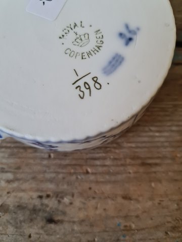 Royal Copenhagen Musselmalet riflet smørskål No. 398, 1. sortering Højde 7 cm. Diameter 8,5 cm. Produceret mellem 1898-1923