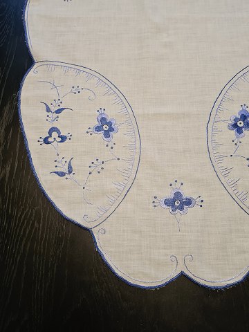 Bordløber broderet med musselmalet mønster Mål 46 x 91 cm. Fremstår med mikroskopisk hul - se billed.