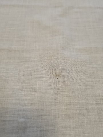 Bordløber broderet med musselmalet mønster Mål 46 x 91 cm. Fremstår med mikroskopisk hul - se billed.