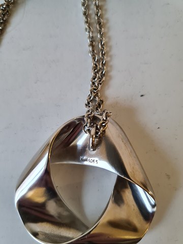 Hans Hansen lang sølv halskæde med stort vedhæng i moderne design Stemplet: Ha.H - 925s Længde på kæden: 60 cm. Diameter på vedhænget: 5 cm.
