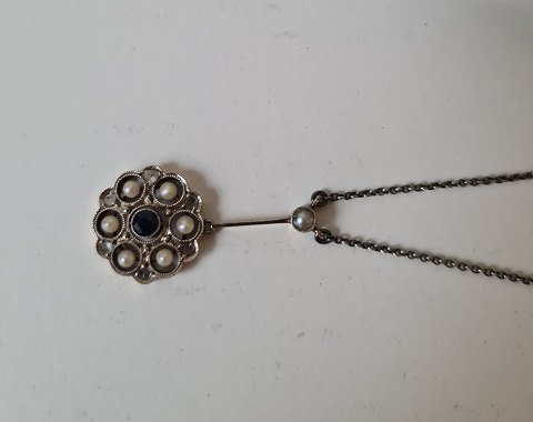 Belle Époque halskæde med safir vedhæng omkranset af ægte perler og diamanter