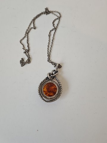 Hermann Siersbøl vintage necklace in silver with large pendant with amber