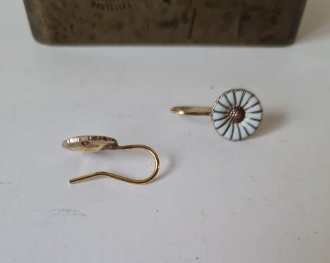 Georg Jensen Marguerite - Daisy øreringe i forgyldt sterlingsølv og emalje 11 mm.