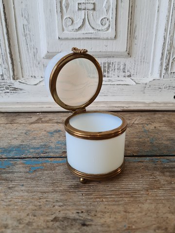 1800tals skrin i hvidt opalineglas med forgyldt montering