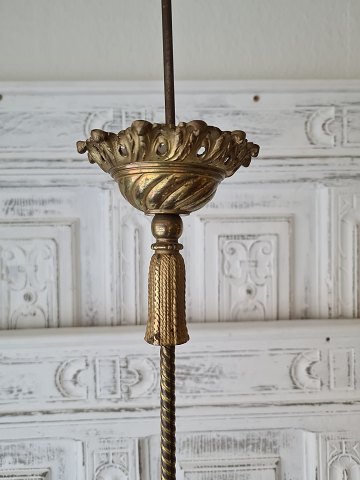 Smuk hall lanteren i Böhmisk krystal med forgyldt montering Længde 88 cm. Diameter på glaskuplen 16 cm.