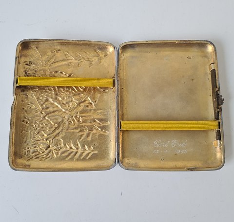 Russian cigarette case in silver decorated with forest part with five bears Stamped: Pyotr Petrov - Moscow 1908-17 Dimensions 9.5 x 12 cm.