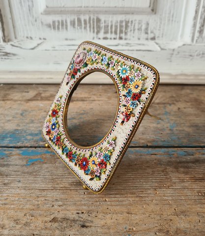 Smuk gammel italiensk billedramme - Micro Mosaic Millefiori Mål på rammen 11,2 x 11,2 cm. Diameter på cirklen til billed 7 cm.