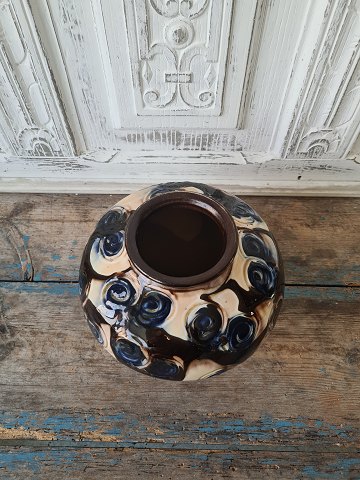 Kähler kohorns dekoreret vase Stemplet: HAK Højde 17 cm. Diameter 19 cm. Fremstår md et meget lille glasur afslag på fodranden - se billed