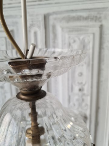 Smuk sækkeformet prisme ampel. Fremstår med et lille skår på top skålen - se billed Diameter 18 cm. Højde 37 cm.