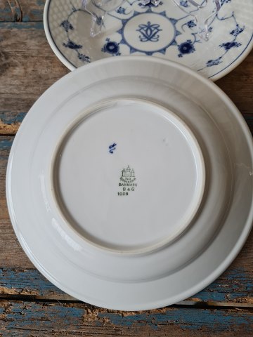 B&G Blåmalet Hotelporcelæn med logo stor dybtallerken No. 1008, 1. sortering Diameter 24,5 cm. Lager: 1