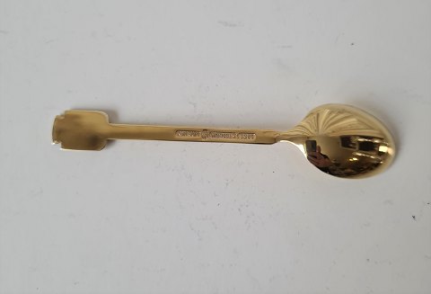 Norwegian mocha spoon in gilded silver and enamel with the text Bergen Stamp 925