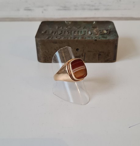 Vintage herrering i 14 kt guld med bånd agat Stemplet 585 Ringstørrelse 59 Mål på stenen: 13,5 x 14,8 mm.