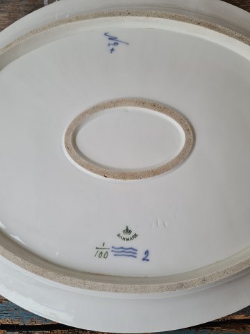 Royal Copenhagen Musselmalet riflet stort fad No. 100, 1. sortering Mål 33 x 41 cm. Produceret mellem 1894-1900