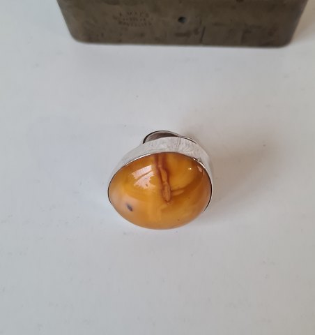 Vintage sølv ring med stor polleret ravklump Stemplet 925 - WK Mål på ravklumpen: 26 x 35 mm. Ringstørrelse 49