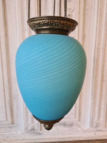 1800tals lille ampel i smukt lyseblåt snoet glas