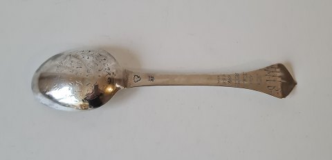 Barokske i sølv fra 1699 Stemplet: Odense bymærke samt Jesper Hansen Rust borgerskab 1680, død 1723 Fremstår med gravering Længde 20,3 cm.