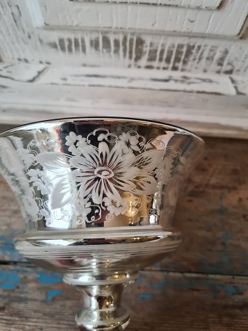 1800tals kandis skål i fattigmands sølv, fint dekoreret med blomster og fugle. Højde 15 cm. Diameter 14,5 cm.