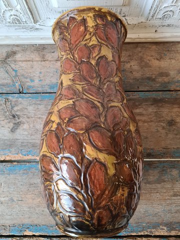 Svend Hammershøi for Kähler stor vase dekoreret med bladværk i relief 39,5 cm. Produceret mellem 1904-12