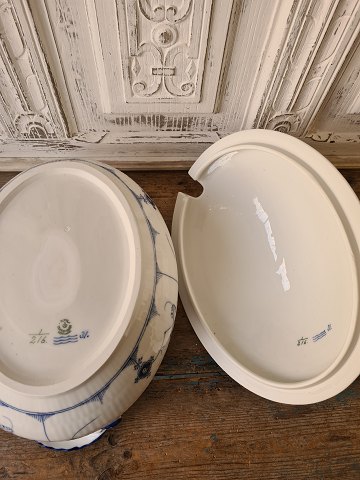 Royal Copenhagen Blue fluted large oval terrine no. 216 on saucer no. 219