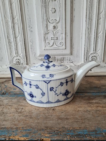 Royal Copenhagen Musselmalet riflet oval tekande No. 255, 2. sortering - kanden vipper lidt Højde 15 cm. Længde 27 cm. Produceret mellem 1923-35
