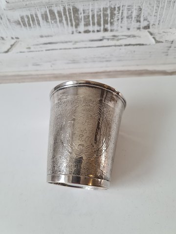 Nålepunslet sølvbæger forsynet med ejerinitialer samt årstal 1807