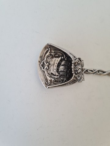 Tea Caddy ske i sølv dekoreret med skib og nøgen kvinde